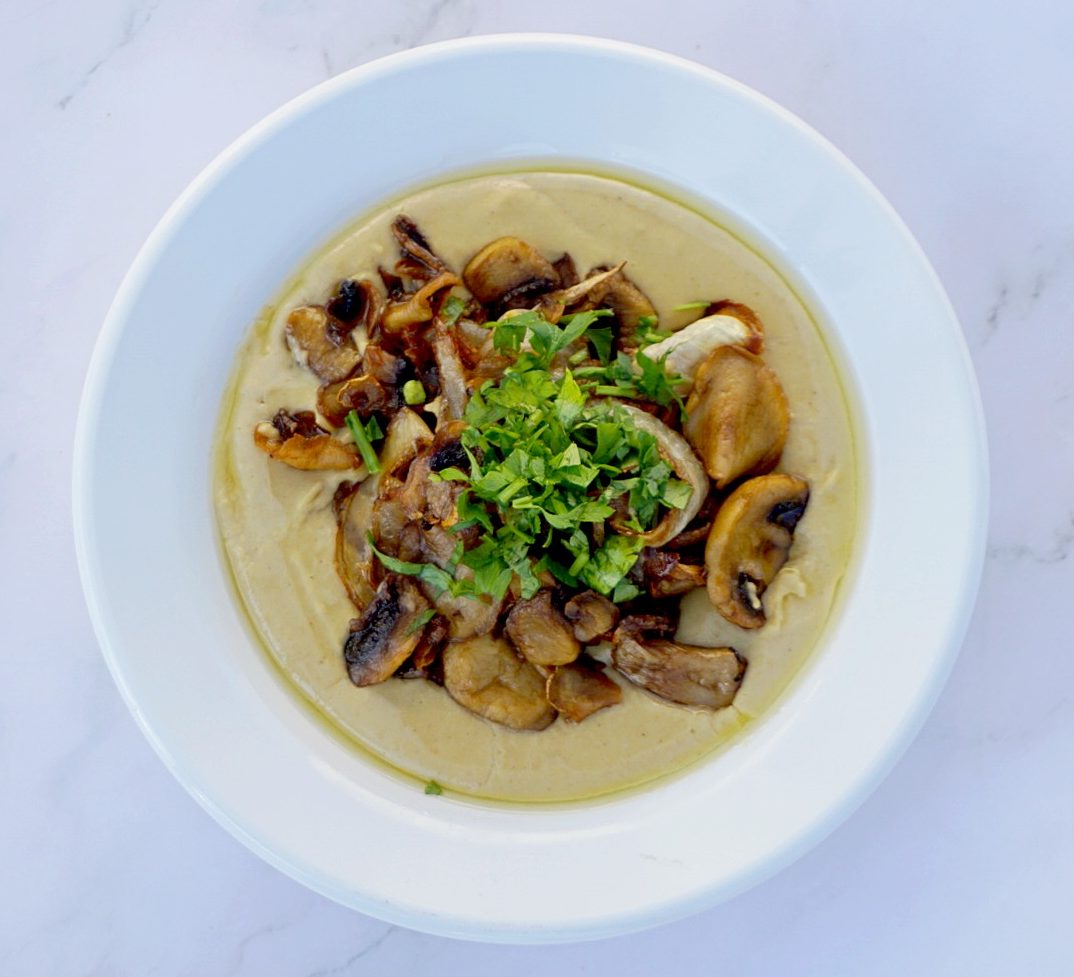 חומוס פטריות בגבוה חומוס עם פטריות שמפניון טריות מוקפצות עם בצל, שמן זית ופטרוזיליה המנה מגיעה עם 2 פיתות, חמוצים, בצל וחריף