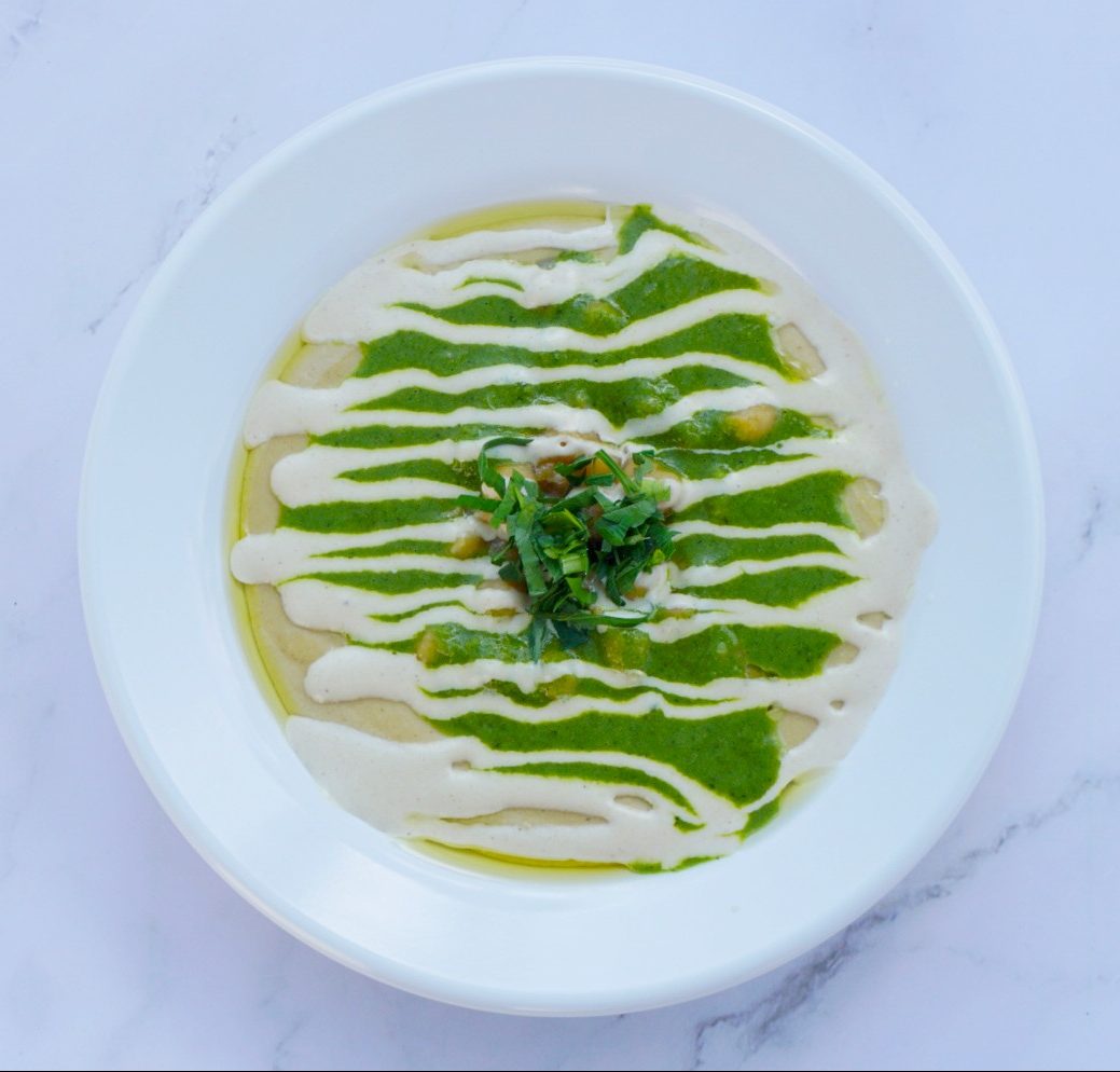 מסבחה ירוקה חומוס בתוספת גרגירים, טחינה ורוטב פטרוזיליה מדהים. המנה מגיעה עם 2 פיתות, חמוצים, בצל וחריף.