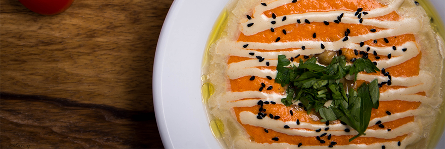 חומוס בתוספת גרגירים טחינה ורוטב עגבניות שום מטריף וחרפרף
